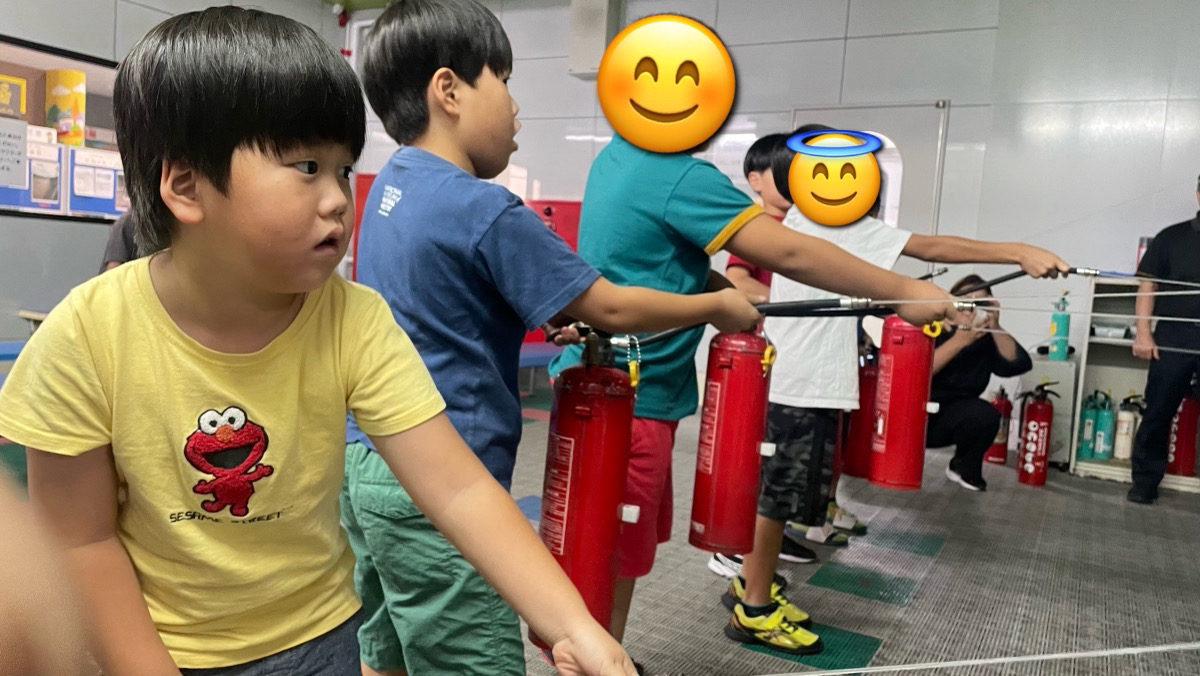 火に見立てた的に向かって水をシュッ!💦