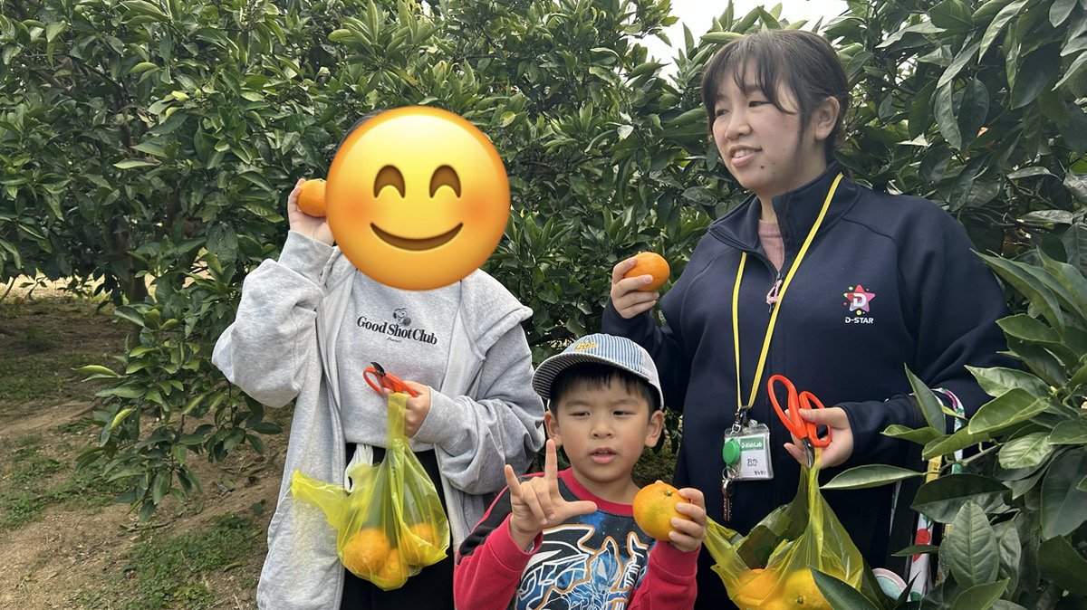ワクワクした様子で木についてるみかんを見上げていましたよ✨