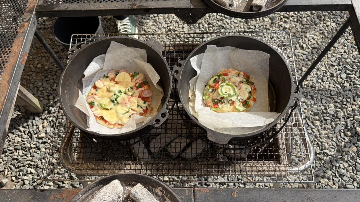 チーズを乗せてダッチオーブンで焼き上げました🔥