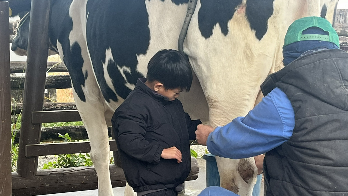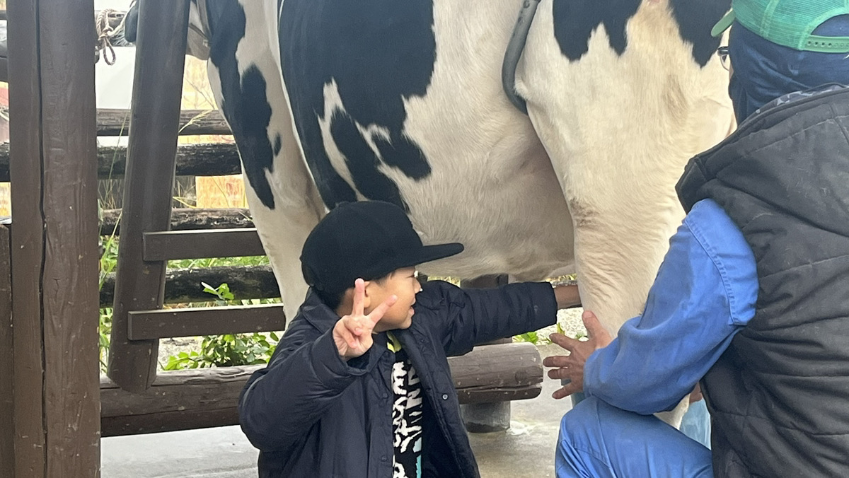 教えてもらった通りに一つひとつ丁寧に乳しぼりに挑戦しました✨️