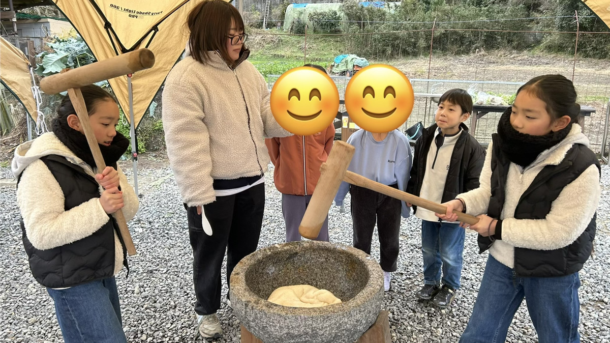 その後は、楽しみにしていた餅つき体験🍡