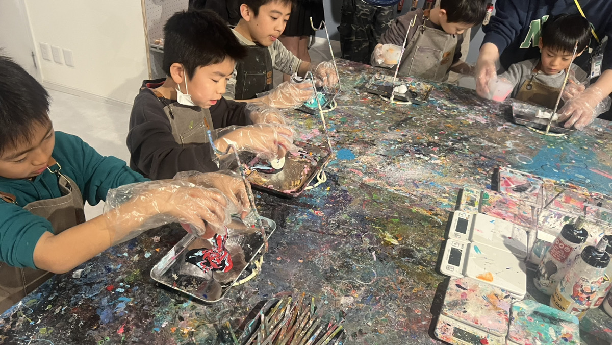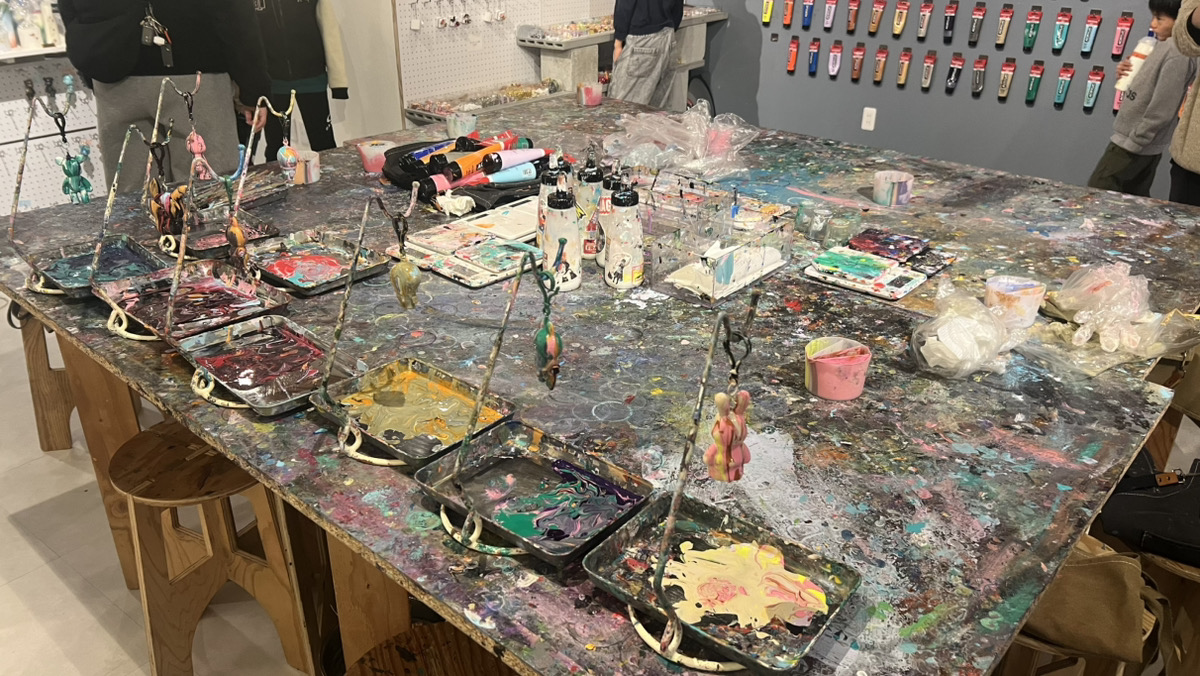まずはたくさんの種類の塗料を選んで薬品と混ぜ合わせます。