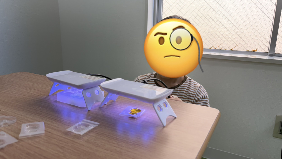 レジン液を入れてレジンライトで固めると出来上がりです🤩