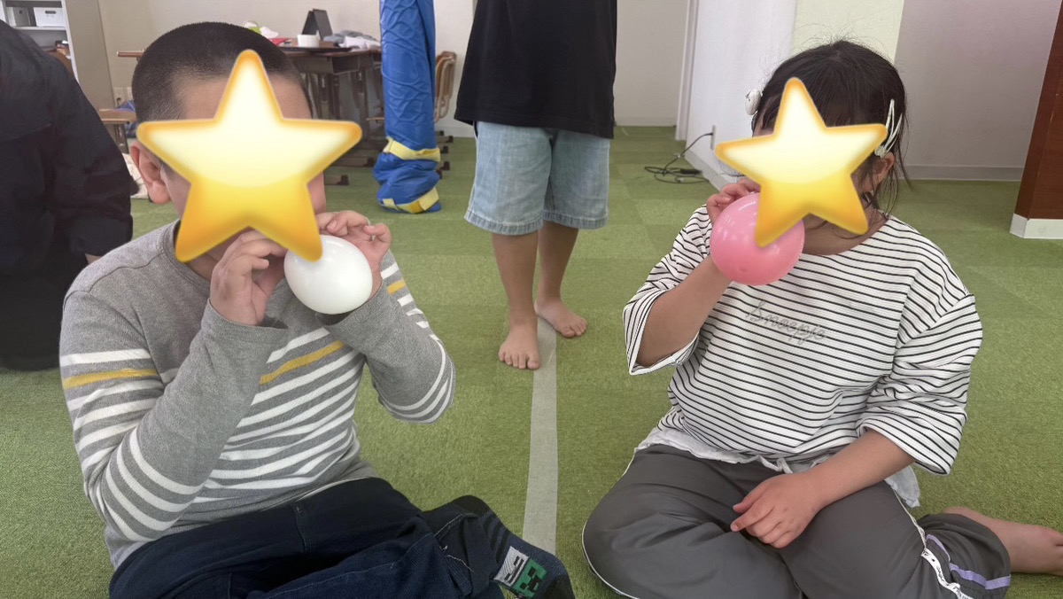 意外にも子どもたちはすぐに膨らませることが出来ました!😳